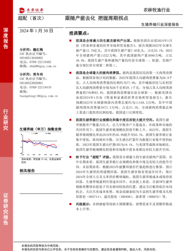 【东莞证券】【20240130】20240130-东莞证券-生猪养殖行业深度报告:跟随产能去化 把握周期拐点-17页