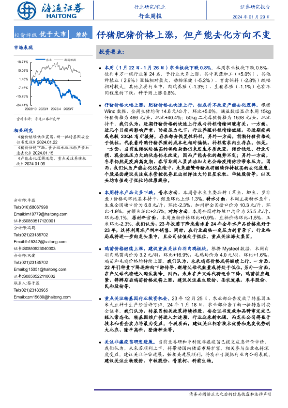 【海通证券】【20240129】20240129-海通证券-农业行业周报:仔猪肥猪价格上涨,但产能去化方向不变-11页