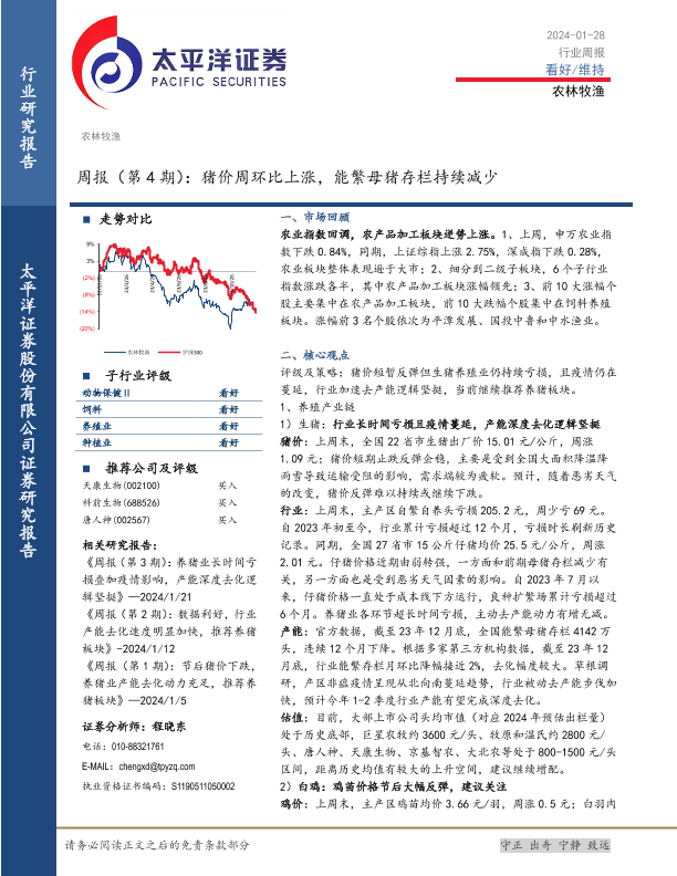 【太平洋证券】【20240128】农林牧渔周报(第4期):猪价周环比上涨,能繁母猪存栏持续减少-17页
