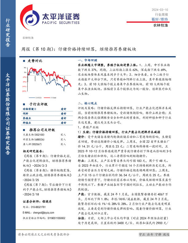 【太平洋证券】【20240310】20240310-太平洋-农林牧渔周报(第10期):仔猪价格持续回落,继续推荐养猪板块-17页