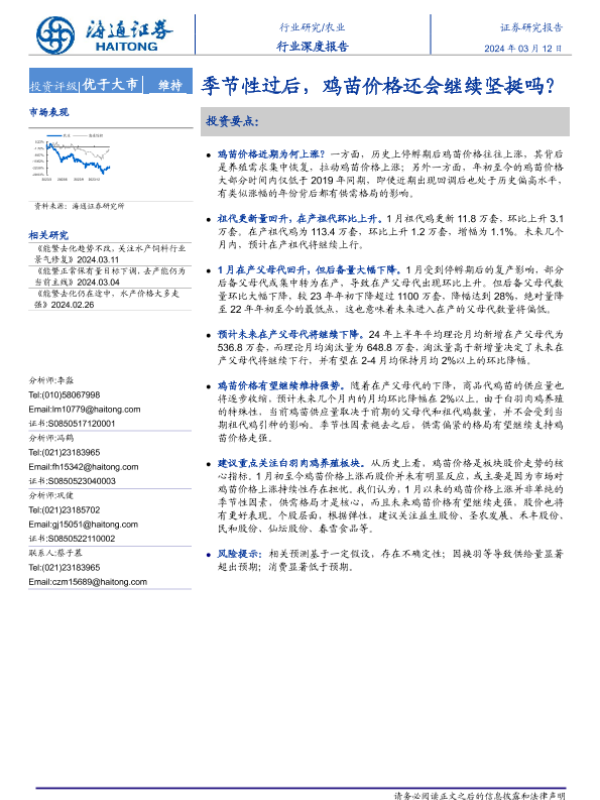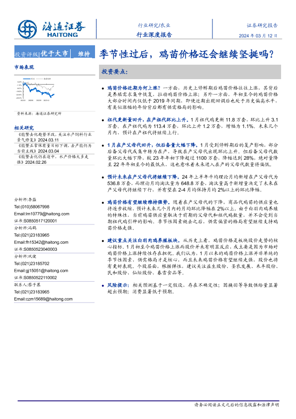 【海通证券】【20240312】20240312-海通证券-农业行业深度报告:季节性过后,鸡苗价格还会继续坚挺吗?-14页