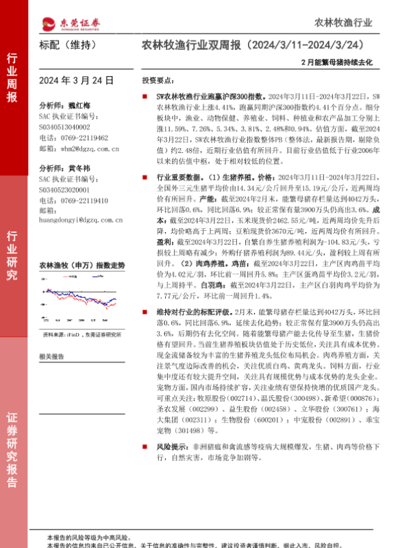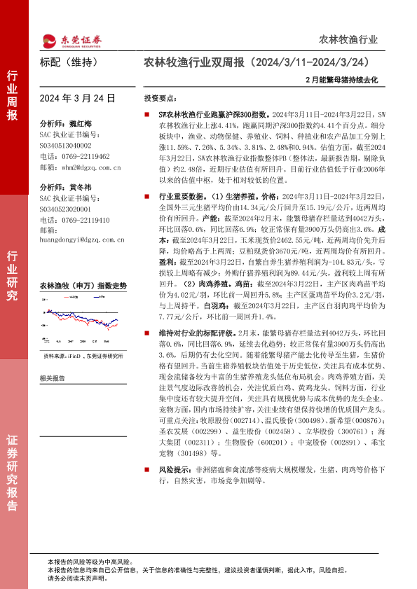 【东莞证券】【20240324】农林牧渔行业双周报:2月能繁母猪持续去化-10页