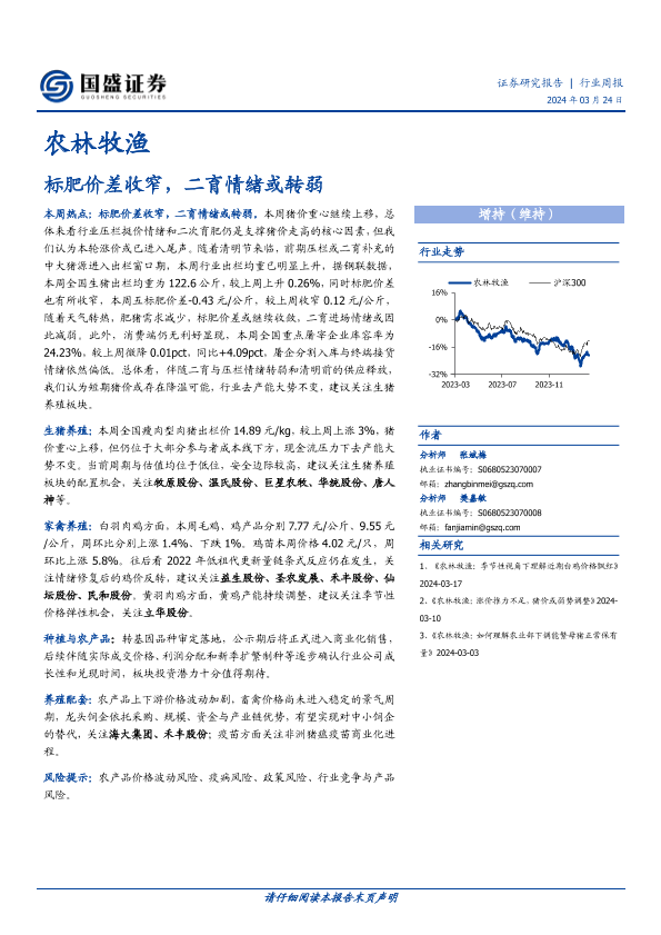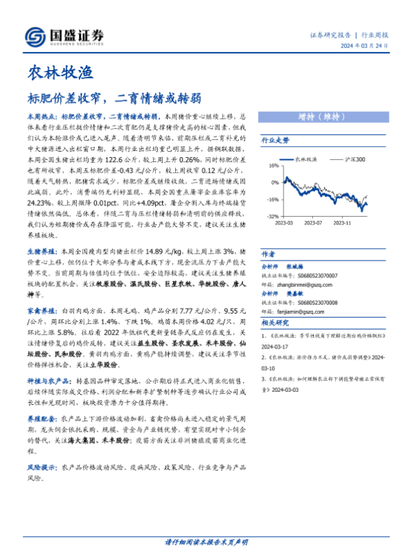 【国盛证券】【20240324】农林牧渔行业周报:标肥价差收窄,二育情绪或转弱-13页