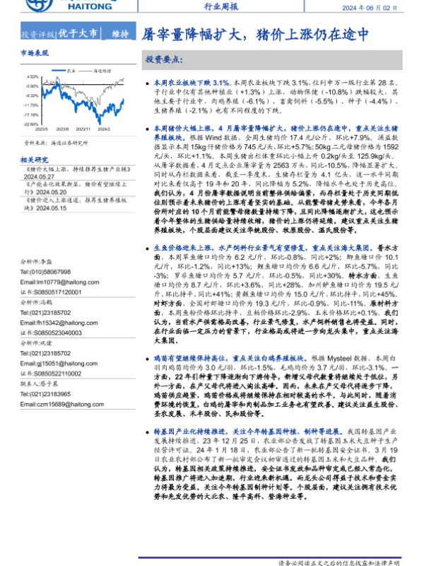 【海通证券】【20240602】20240602-海通证券-农业行业周报:屠宰量降幅扩大,猪价上涨仍在途中-11页