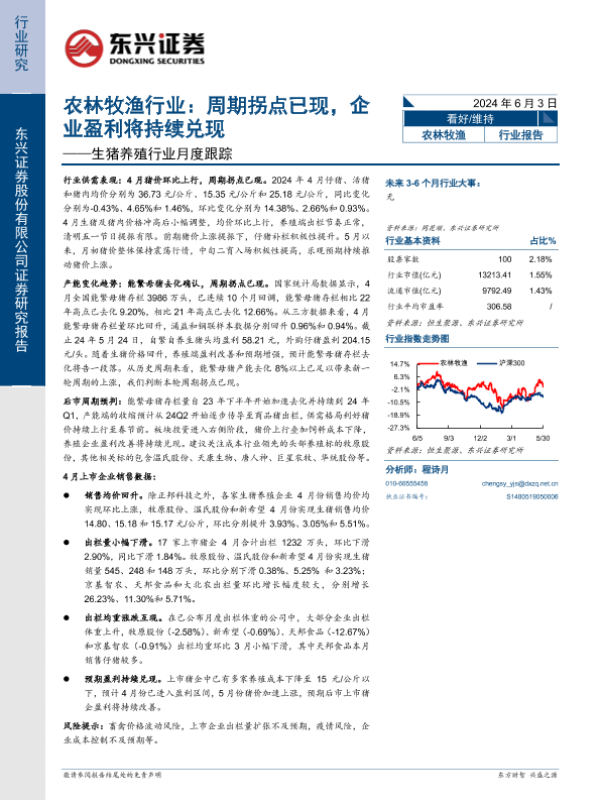 【东兴证券】【20240603】20240603-东兴证券-生猪养殖行业月度跟踪:农林牧渔行业:周期拐点已现,企业盈利将持续兑现-10页