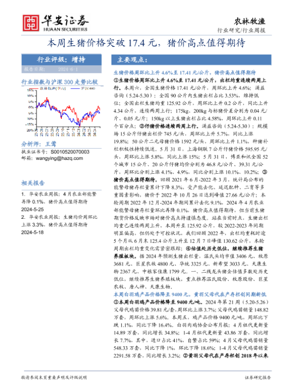 【华安证券】【20240601】20240601-华安证券-农林牧渔行业周报:本周生猪价格突破17.4元,猪价高点值得期待-44页