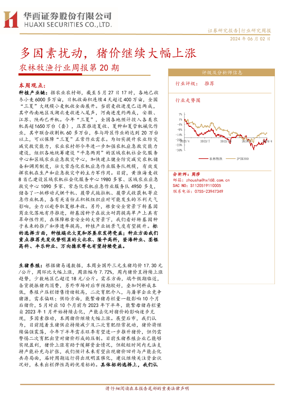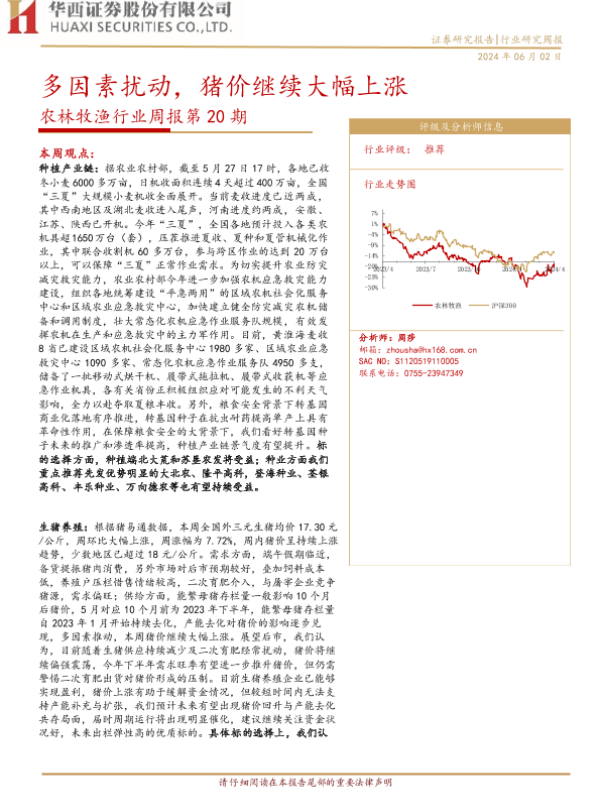 【华西证券】【20240602】20240602-华西证券-农林牧渔行业周报第20期:多因素扰动,猪价继续大幅上涨-25页