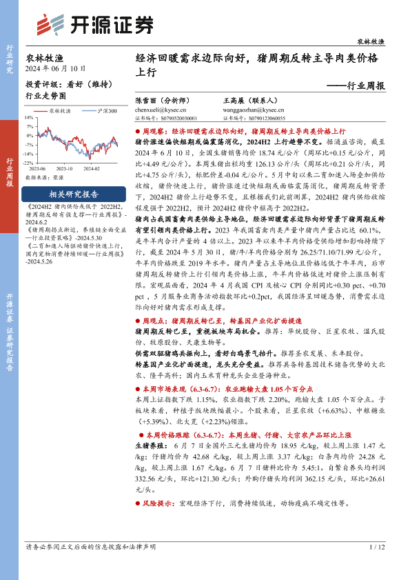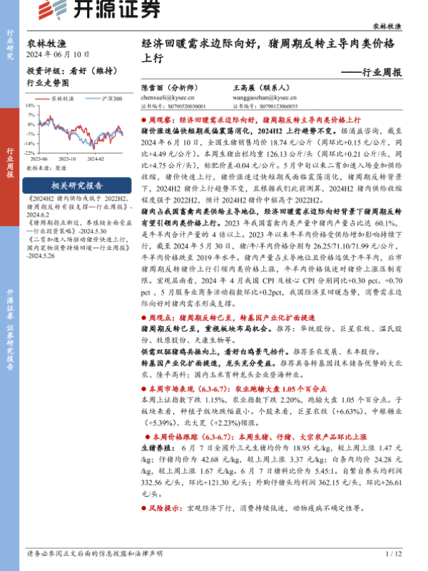 【开源证券】【20240610】农林牧渔行业周报:经济回暖需求边际向好,猪周期反转主导肉类价格上行-12页