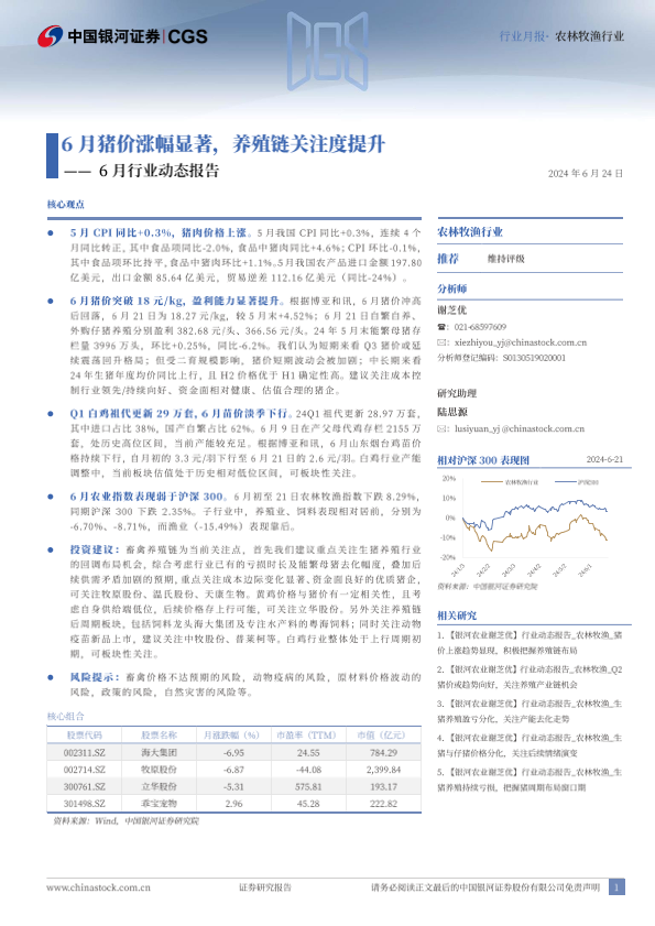 【银河证券】【20240624】20240624-中国银河-农林牧渔6月行业动态报告:6月猪价涨幅显著,养殖链关注度提升-23页