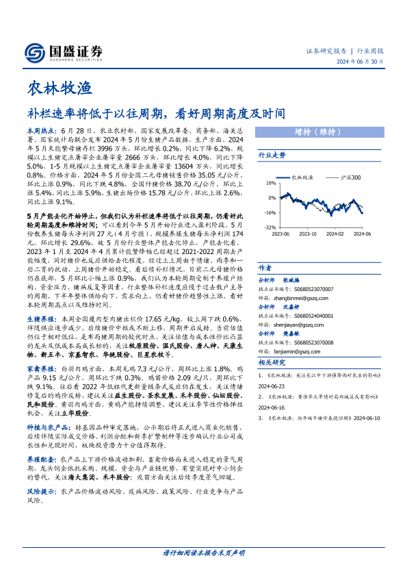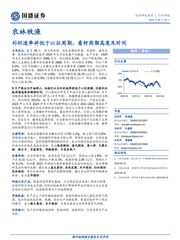 【国盛证券】【20240630】农林牧渔行业周报:补栏速率将低于以往周期,看好周期高度及时间-13页