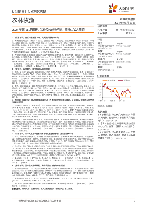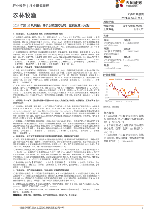 【天风证券】【20240630】2024年第25周周报:猪价反转趋势明确,重视生猪大周期!-15页