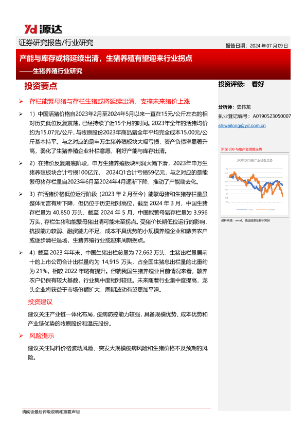 【源达信息】【20240709】产能与库存或将延续出清,生猪养殖有望迎来行业拐点-14页