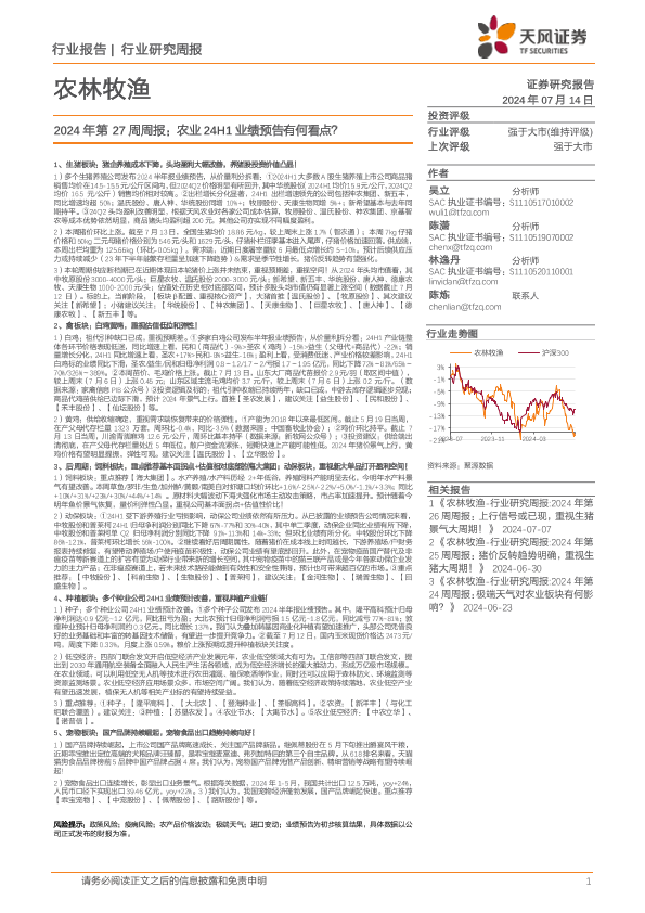 【天风证券】【20240714】农林牧渔2024年第27周周报:农业24H1业绩预告有何看点?-16页