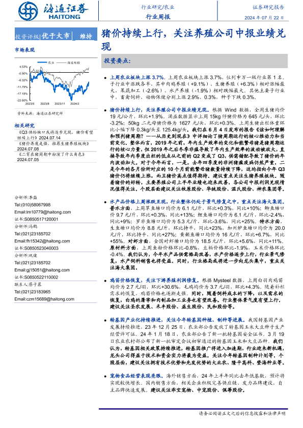 【海通证券】【20240722】20240722-海通证券-农业行业周报:猪价持续上行,关注养殖公司中报业绩兑现-12页