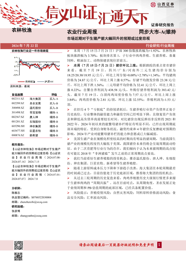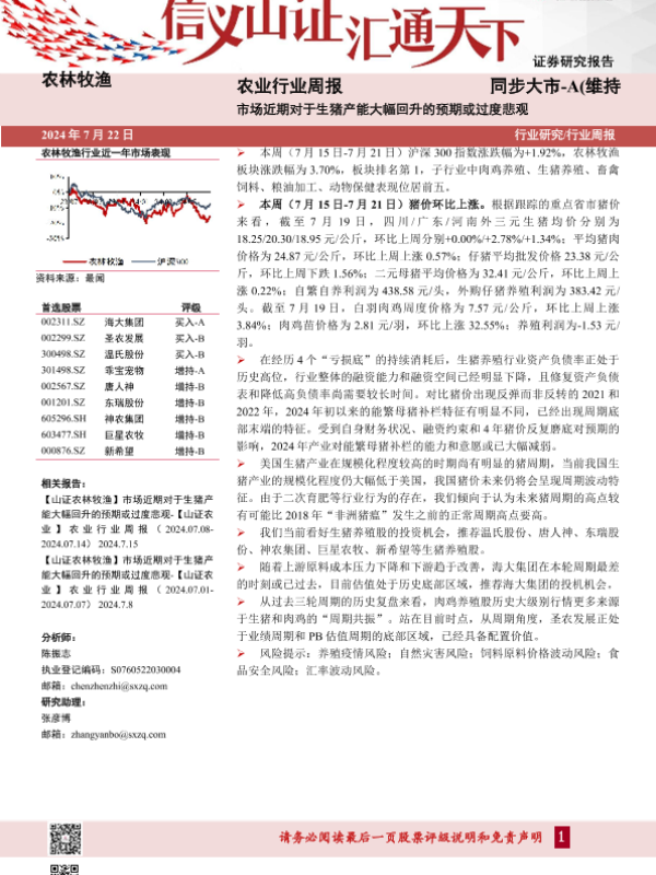 【山西证券】【20240722】农业行业周报:市场近期对于生猪产能大幅回升的预期或过度悲观-18页