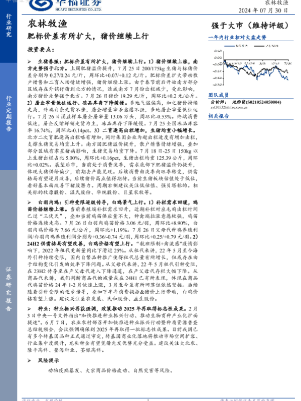 【华福证券】【20240730】农林牧渔:肥标价差有所扩大,猪价继续上行-12页
