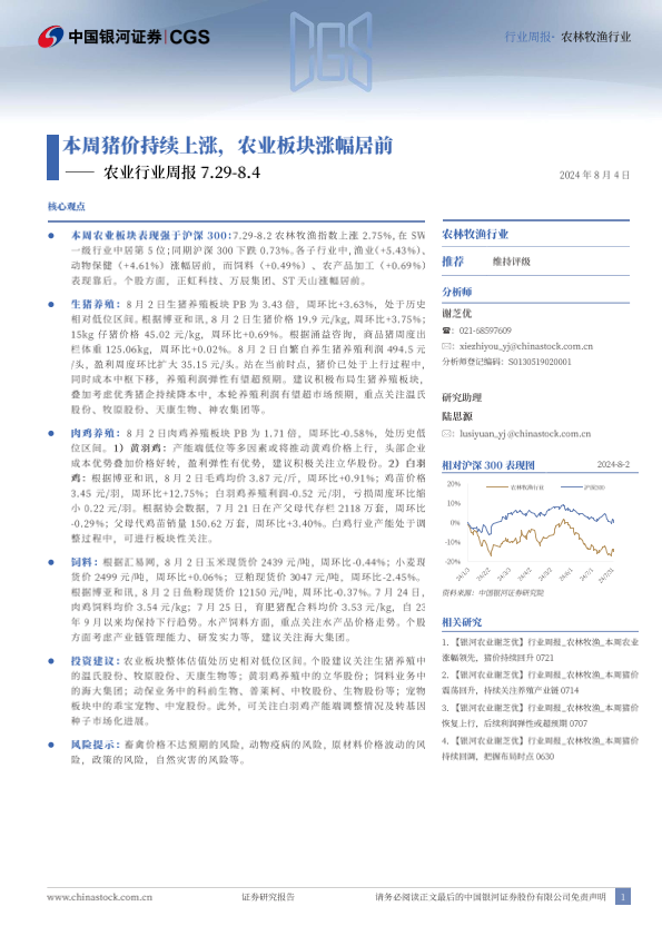 【银河证券】【20240804】20240804-中国银河-农业行业周报:本周猪价持续上涨,农业板块涨幅居前-14页