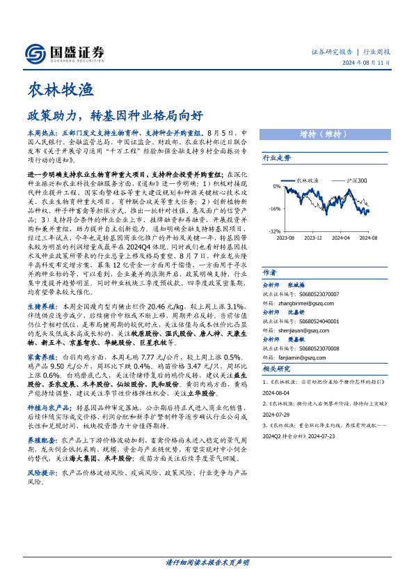 【国盛证券】【20240811】20240811-国盛证券-农林牧渔行业周报:政策助力,转基因种业格局向好-13页