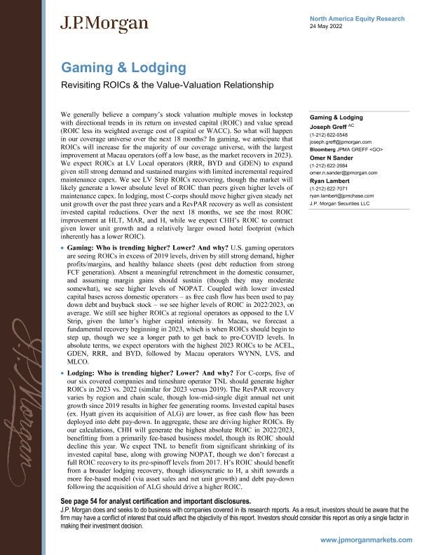 【J.P. Morgan】【20220524】北美博彩和住宿行业-重新审视资本投入回报率和价值评估关系-58页