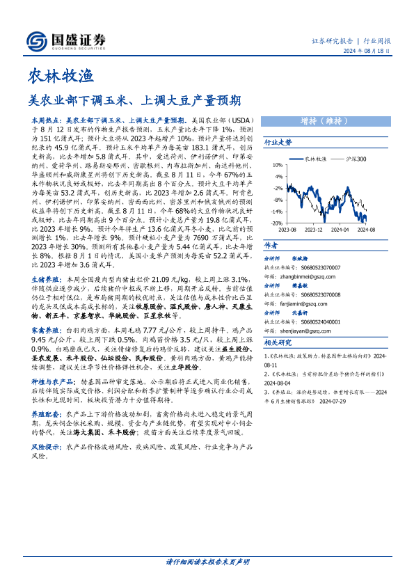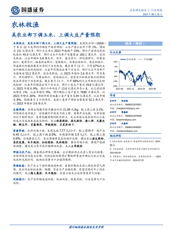 【国盛证券】【20240818】农林牧渔行业周报:美农业部下调玉米、上调大豆产量预期-12页
