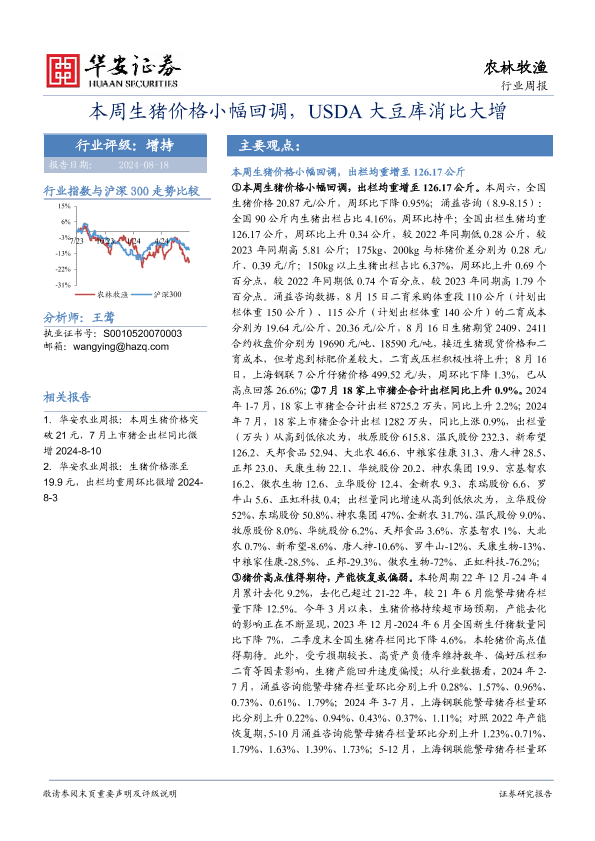【华安证券】【20240818】20240818-华安证券-农林牧渔行业周报:本周生猪价格小幅回调,USDA大豆库消比大增-41页