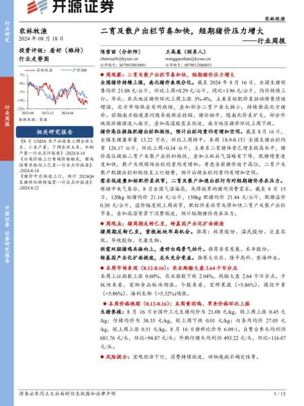 【开源证券】【20240818】二育及散户出栏节奏加快,短期猪价压力增大-13页