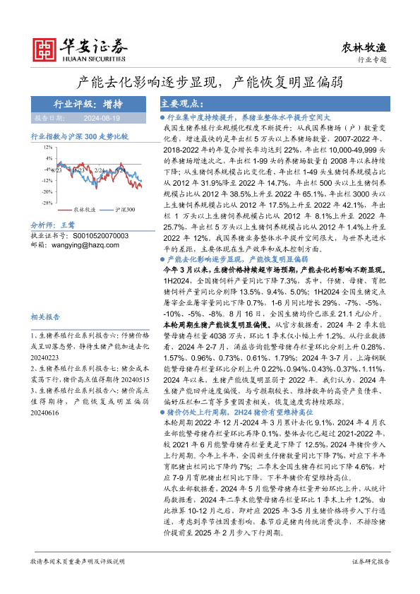 【华安证券】【20240819】20240819-华安证券-农林牧渔行业专题:产能去化影响逐步显现,产能恢复明显偏弱-20页