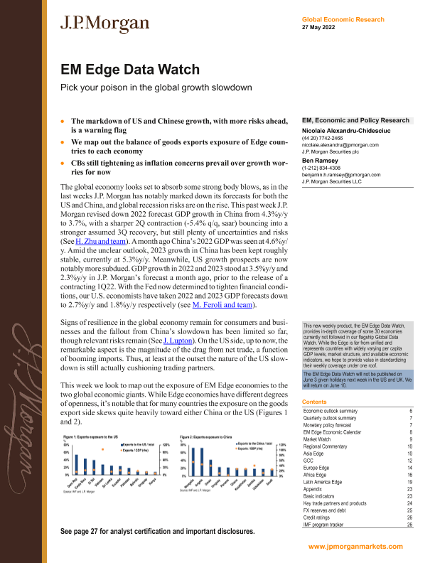 【J.P. Morgan】【20220527】新兴市场投资策略-新兴市场边缘数据观察:在全球增长放缓中做出你的选择-30页