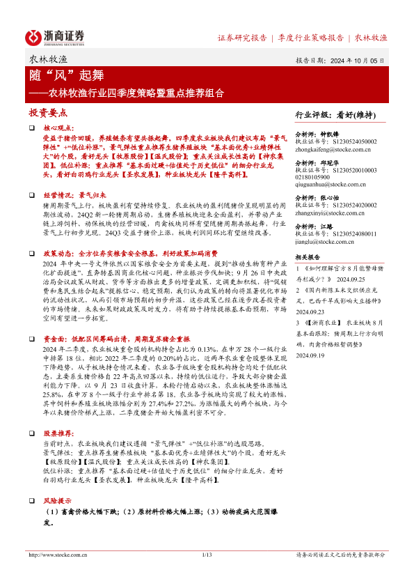 【浙商证券】【20241005】20241005-浙商证券-农林牧渔行业四季度策略暨重点推荐组合:随“风”起舞-13页