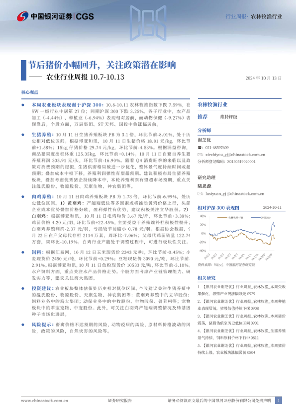 【银河证券】【20241013】20241013-中国银河-农业行业周报:节后猪价小幅回升,关注政策潜在影响-15页