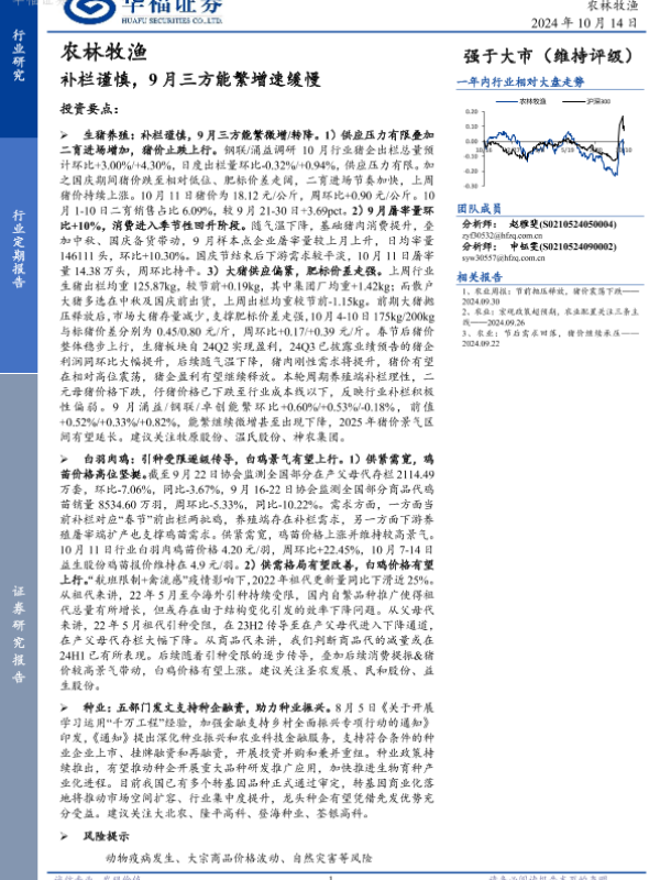 【华福证券】【20241014】20241014-华福证券-农林牧渔行业定期报告:补栏谨慎,9月三方能繁增速缓慢-12页