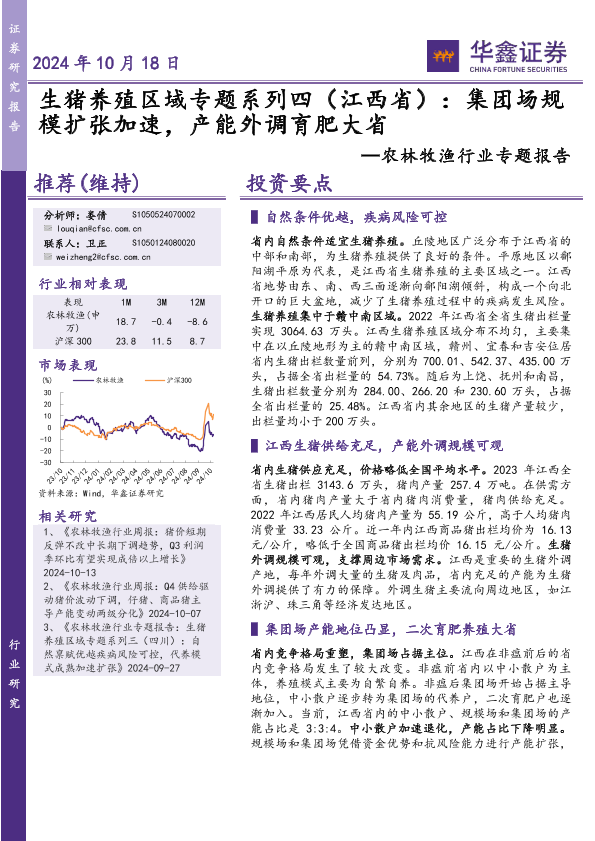 【华鑫证券】【20241018】生猪养殖区域专题系列四(江西省):集团场规模扩张加速,产能外调育肥大省-10页
