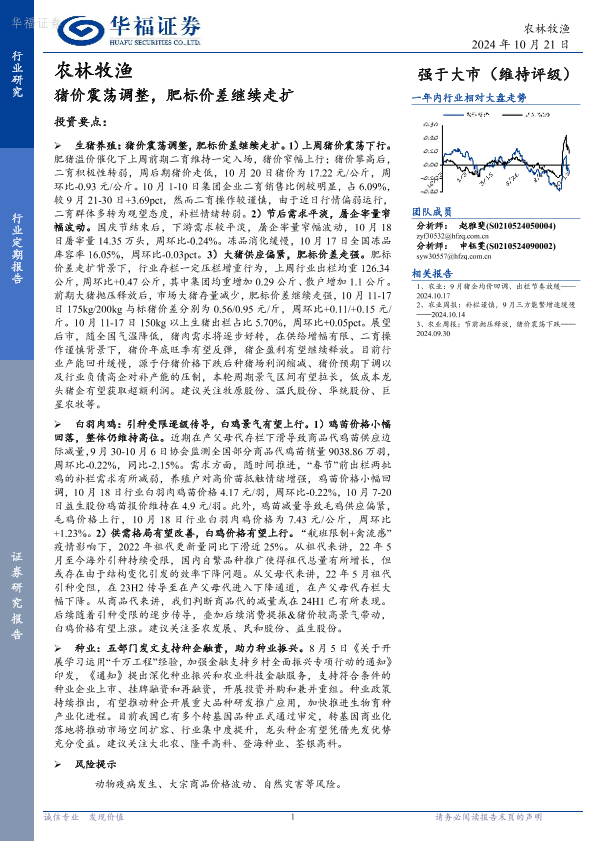 【华福证券】【20241021】农林牧渔:猪价震荡调整,肥标价差继续走扩-12页