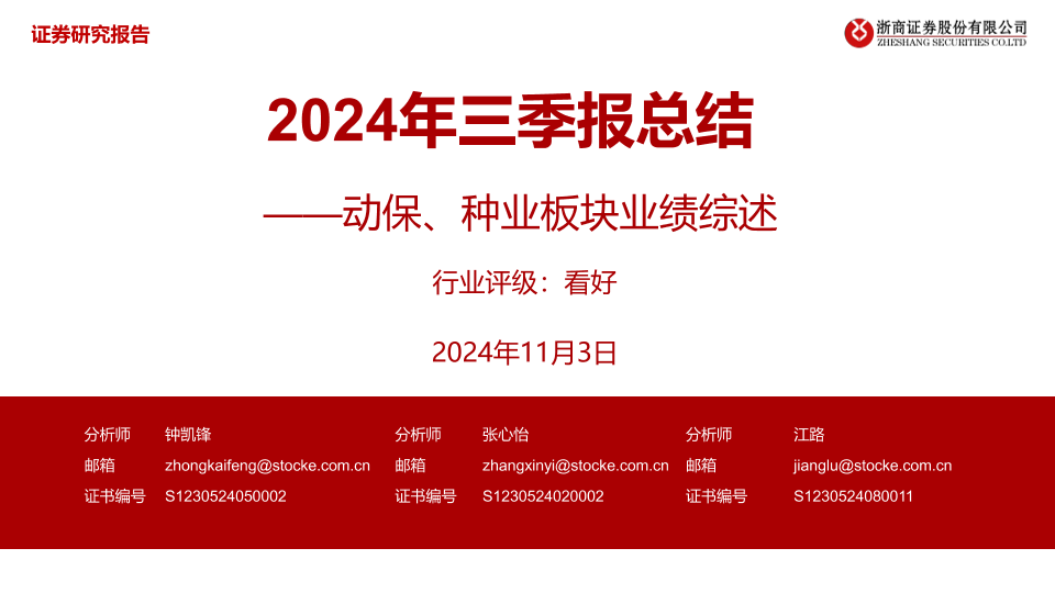 【浙商证券】【20241103】2024年三季报总结——动保、种业板块业绩综述-18页