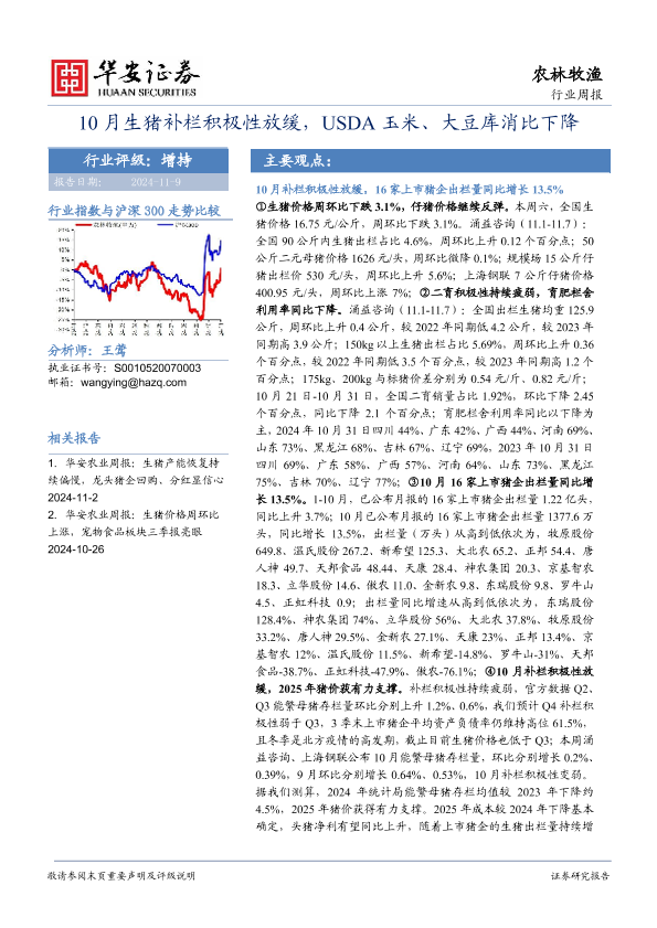 【华安证券】【20241109】20241109-华安证券-农林牧渔行业周报:10月生猪补栏积极性放缓,USDA玉米、大豆库消比下降-42页