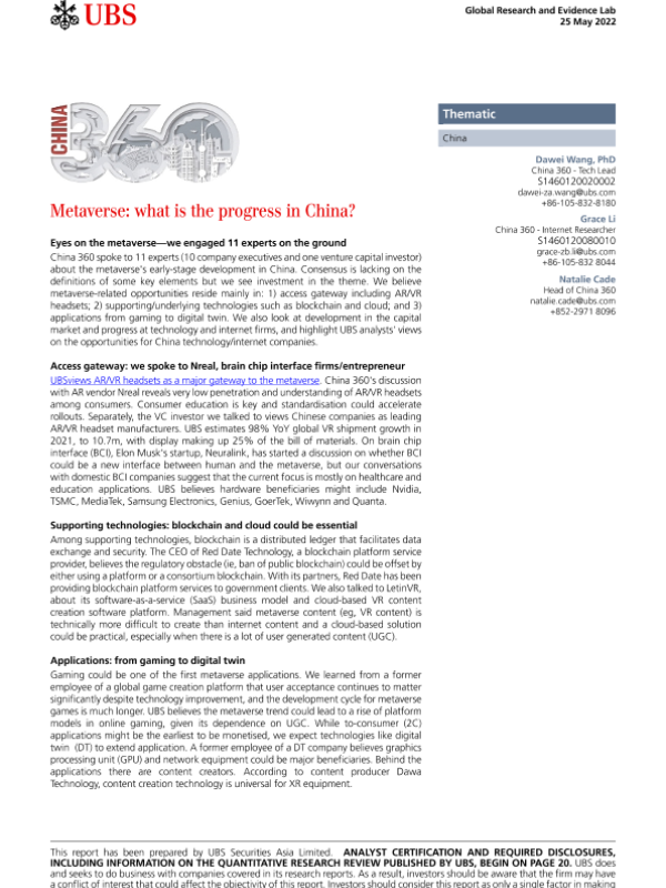 【瑞银】【20220525】瑞银-中国投资策略-元宇宙在中国的进展-24页