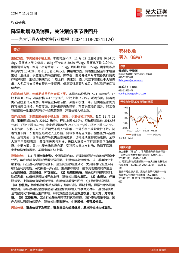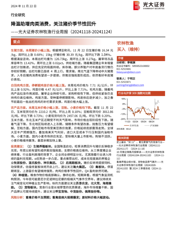 【光大证券】【20241122】20241122-光大证券-农林牧渔行业周报:降温助增肉类消费,关注猪价季节性回升-12页