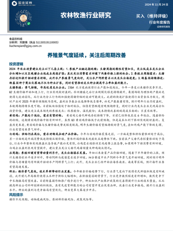 【国金证券】【20241124】20241124-国金证券-农林牧渔行业研究:养殖景气度延续,关注后周期改善-15页