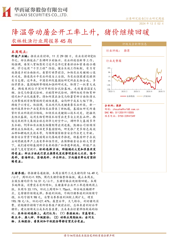 【华西证券】【20241202】20241202-华西证券-农林牧渔行业周报第45期:降温带动屠企开工率上升,猪价继续回暖-25页