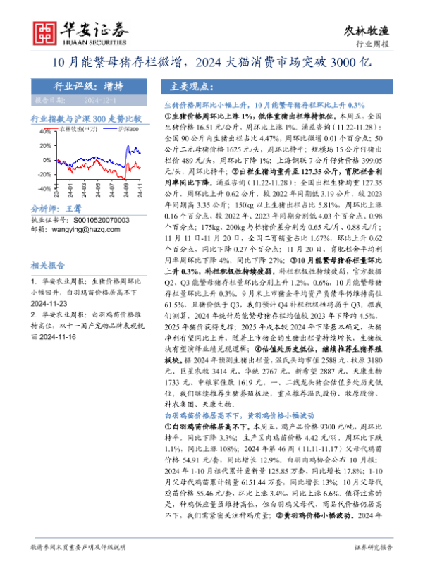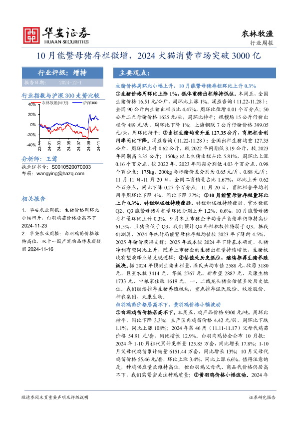 【华安证券】【20241201】20241201-华安证券-农林牧渔行业周报:10月能繁母猪存栏微增,2024犬猫消费市场突破3000亿-43页