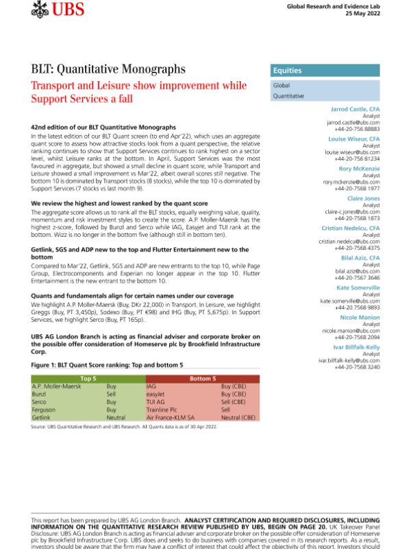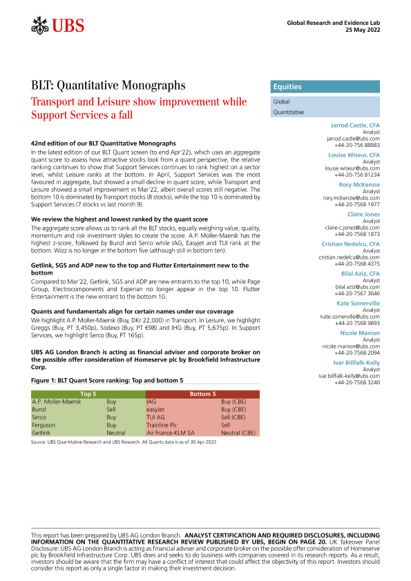 【瑞银(UBS)】【20220525】瑞银-全球商业服务、休闲和运输行业-运输和休闲行业显示出改善,而支持性服务则出现下降-26页
