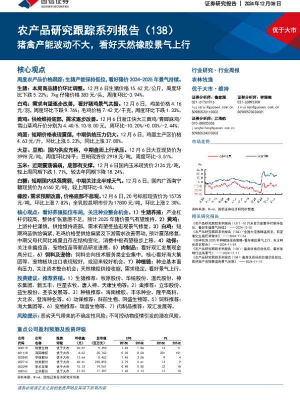 【国信证券】【20241208】20241208-国信证券-农产品研究跟踪系列报告(138):猪禽产能波动不大,看好天然橡胶景气上行-26页