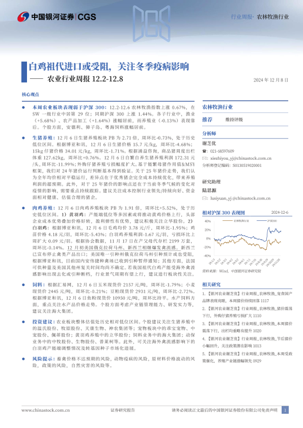 【银河证券】【20241208】20241208-中国银河-农业行业周报:白鸡祖代进口或受阻,关注冬季疫病影响-15页