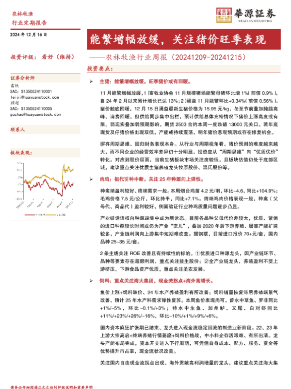 【华源证券】【20241216】农林牧渔行业周报:能繁增幅放缓,关注猪价旺季表现-15页