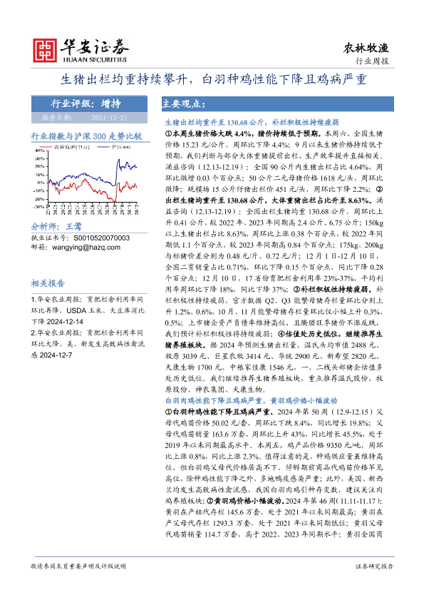 【华安证券】【20241221】20241221-华安证券-农林牧渔行业周报:生猪出栏均重持续攀升,白羽种鸡性能下降且鸡病严重-44页