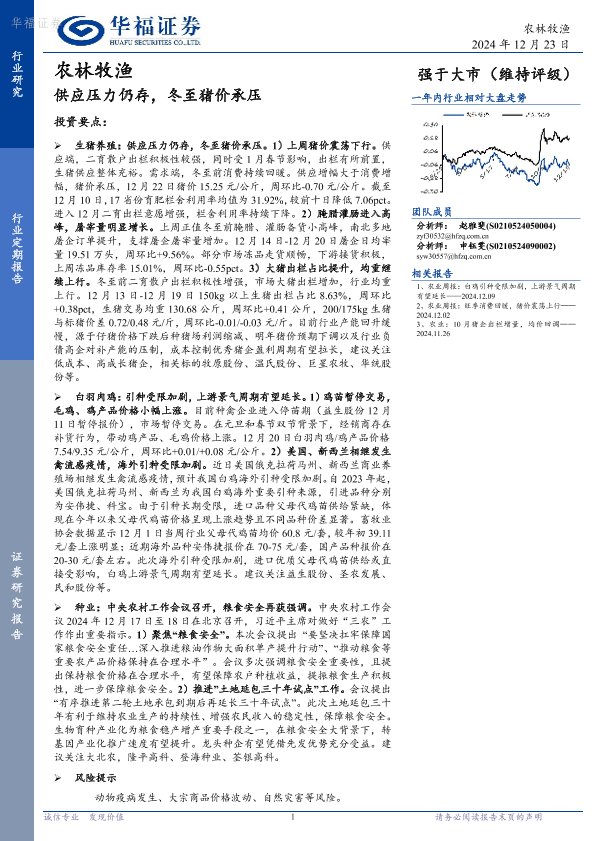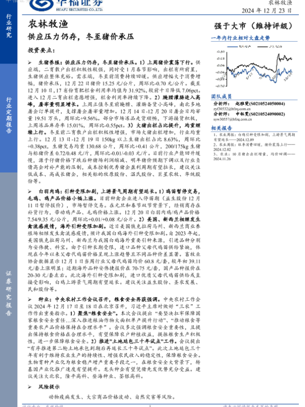 【华福证券】【20241223】农林牧渔:供应压力仍存,冬至猪价承压-13页