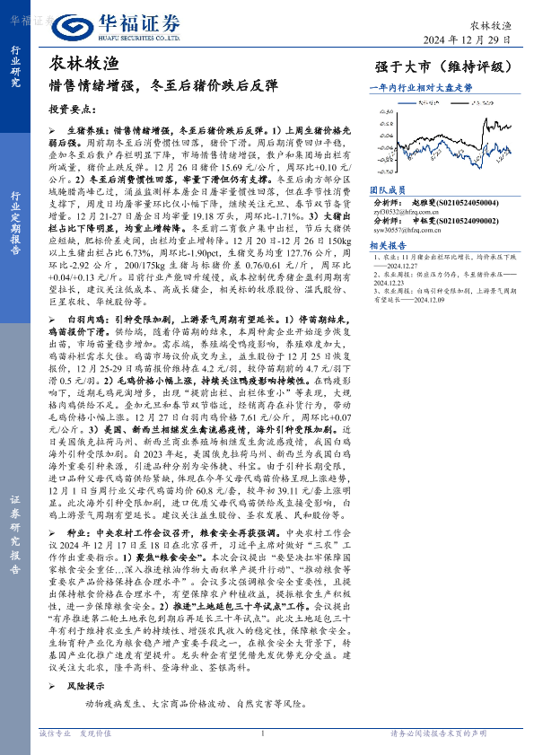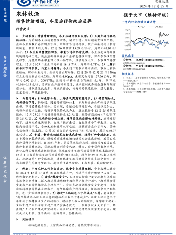 【华福证券】【20241229】农林牧渔:惜售情绪增强,冬至后猪价跌后反弹-12页