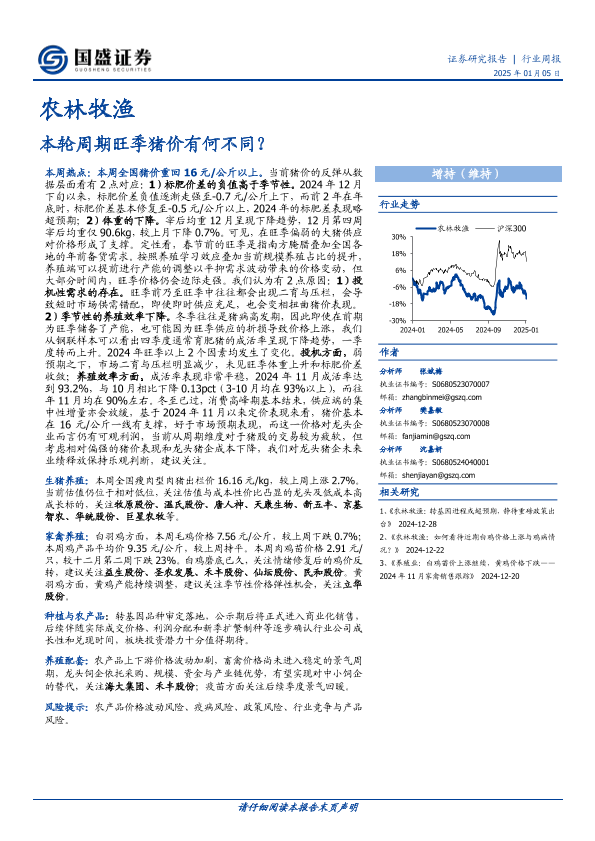 【国盛证券】【20250105】20250105-国盛证券-农林牧渔行业周报:本轮周期旺季猪价有何不同?-13页