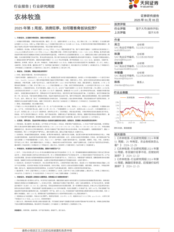 【天风证券】【20250105】农林牧渔行业2025年第1周报:消费旺季,如何看畜禽板块投资?-15页