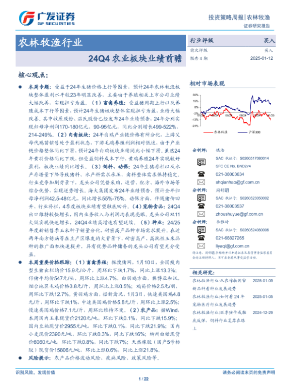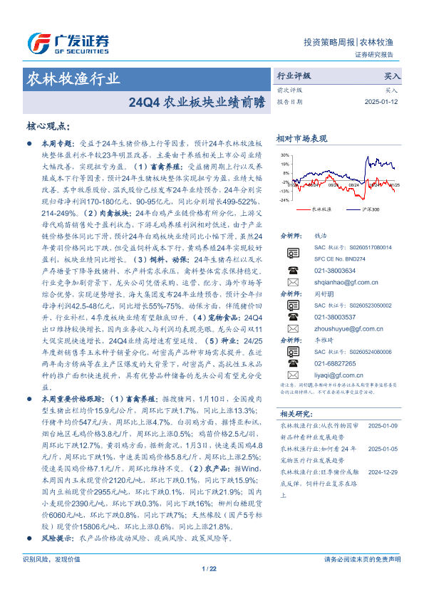 【广发证券】【20250112】24Q4农业板块业绩前瞻-22页
